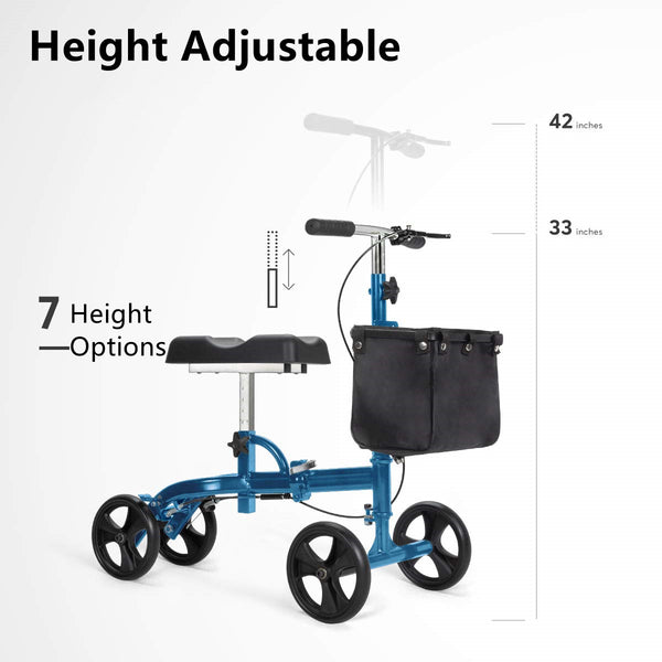By placing the handle height knob into a wanted adjusting hole, the handlebars of this knee scooter would be at the most suitable height for YOU. Available in 7 options, the overall height can change from 33" to 42".